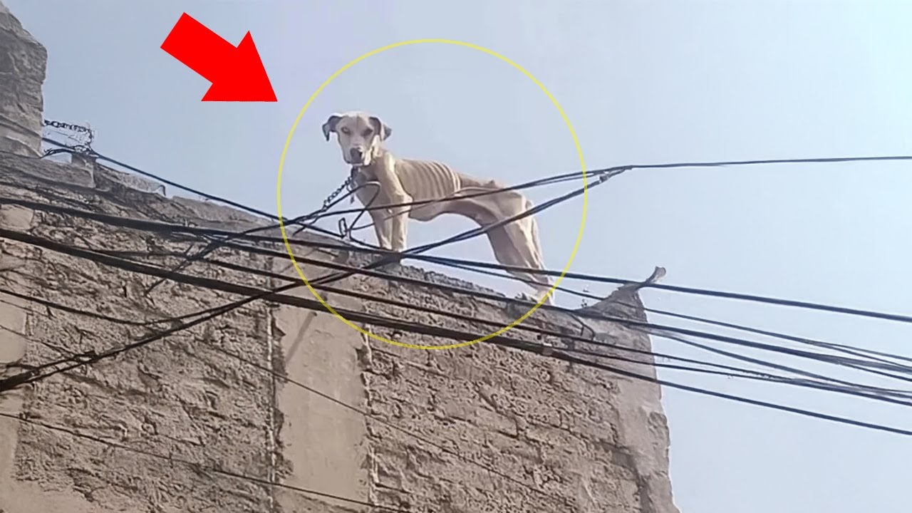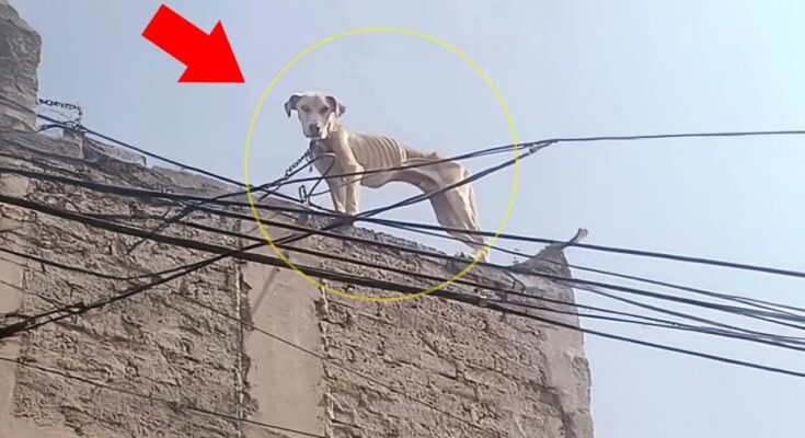 The story begins with a scene of profound neglect, high above the ground. A dog, whose world had been reduced to the blistering heat of a rooftop, was discovered in a state of utter deprivation. He was chained, a cruel tether that limited his movement to a few desperate paces, with no shelter from the relentless sun. The ground beneath him was a scorching prison, and his body told the grim tale of prolonged starvation, every rib and vertebra visible beneath a thin coat.